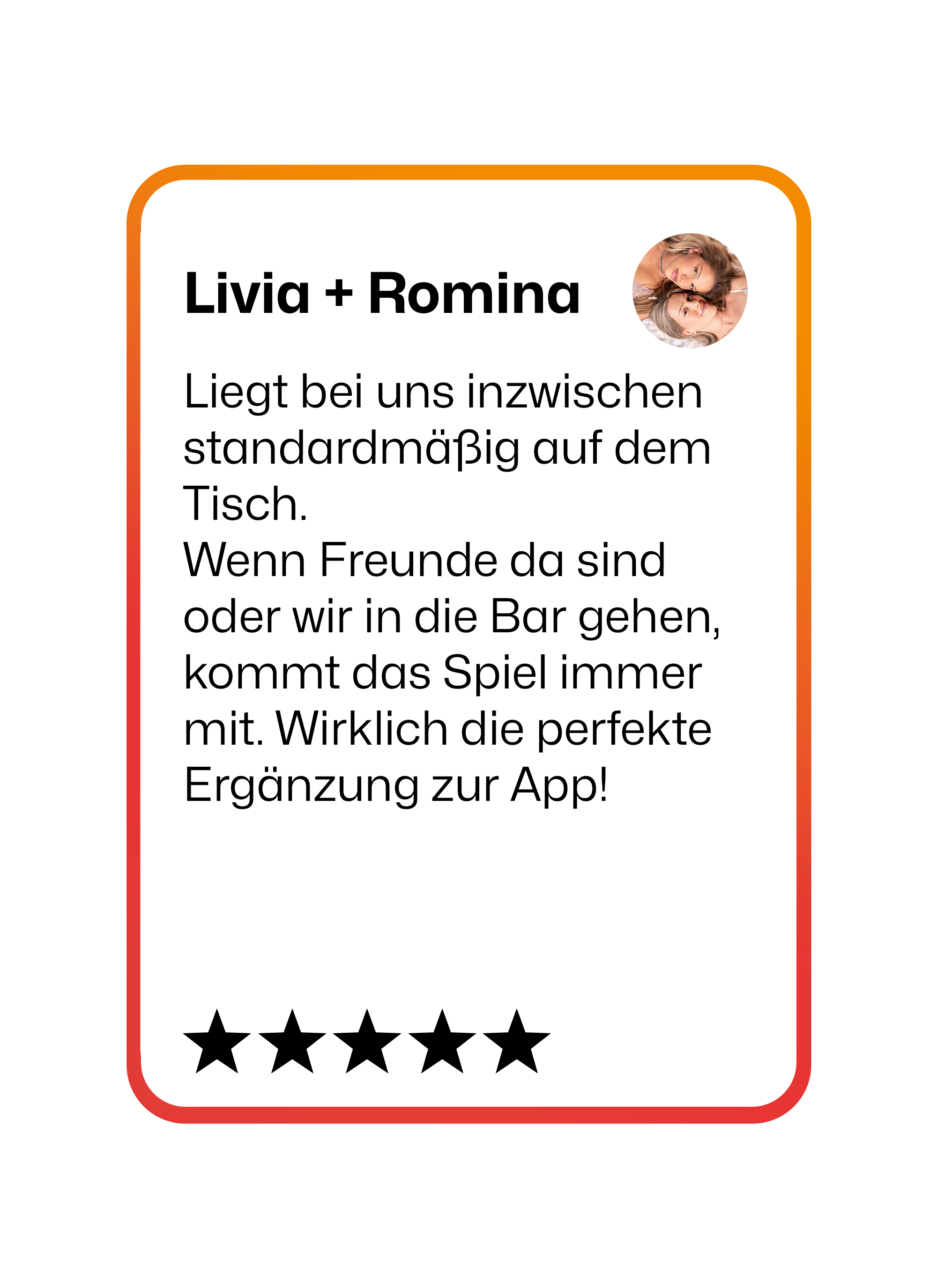 Dank über 300 Begriffen und spannenden Actionkarten entsteht ein richtiges Gesellschaftsspiel, das jede Runde einzigartig macht und für noch mehr Lacher, Chaos und Interaktion sorgt.
